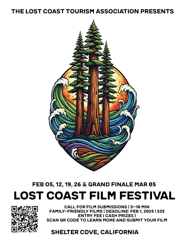Lights, camera, Lost Coast. The Lost Coast Film Festival is a community-driven celebration of storytelling, creativity, and local talent—open to filmmakers of all ages and experience levels. Whether you’re submitting your very first short film or you’ve been making movies for years, this is your chance to share your work, connect with the community, and see your film on the big screen right here on the Lost Coast.